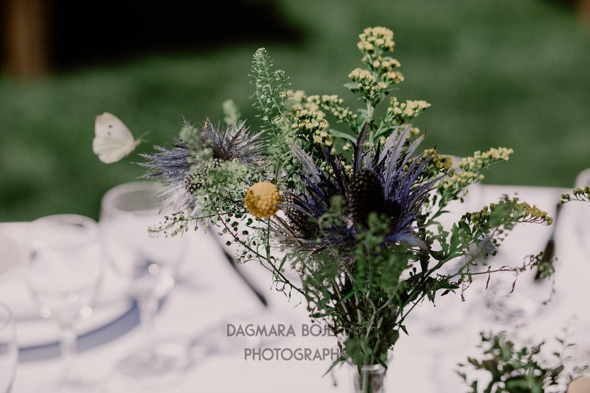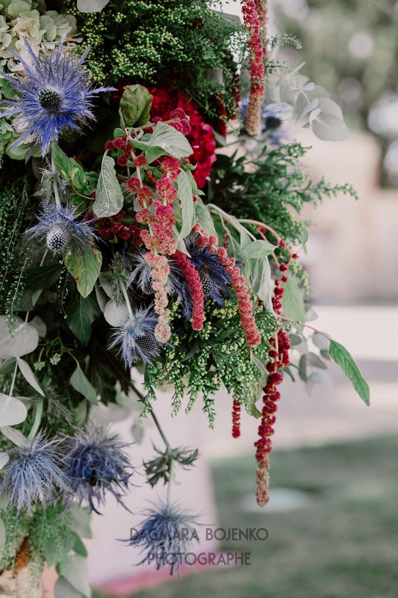 Une cérémonie religieuse en plein air dans la cour du Domaine a lancé les festivités. Tout le décor floral enchanteur et tout en fraîcheur de ce mariage, dont la houppa, a été réalisé par la fleuriste tendance Lilas Bohème.