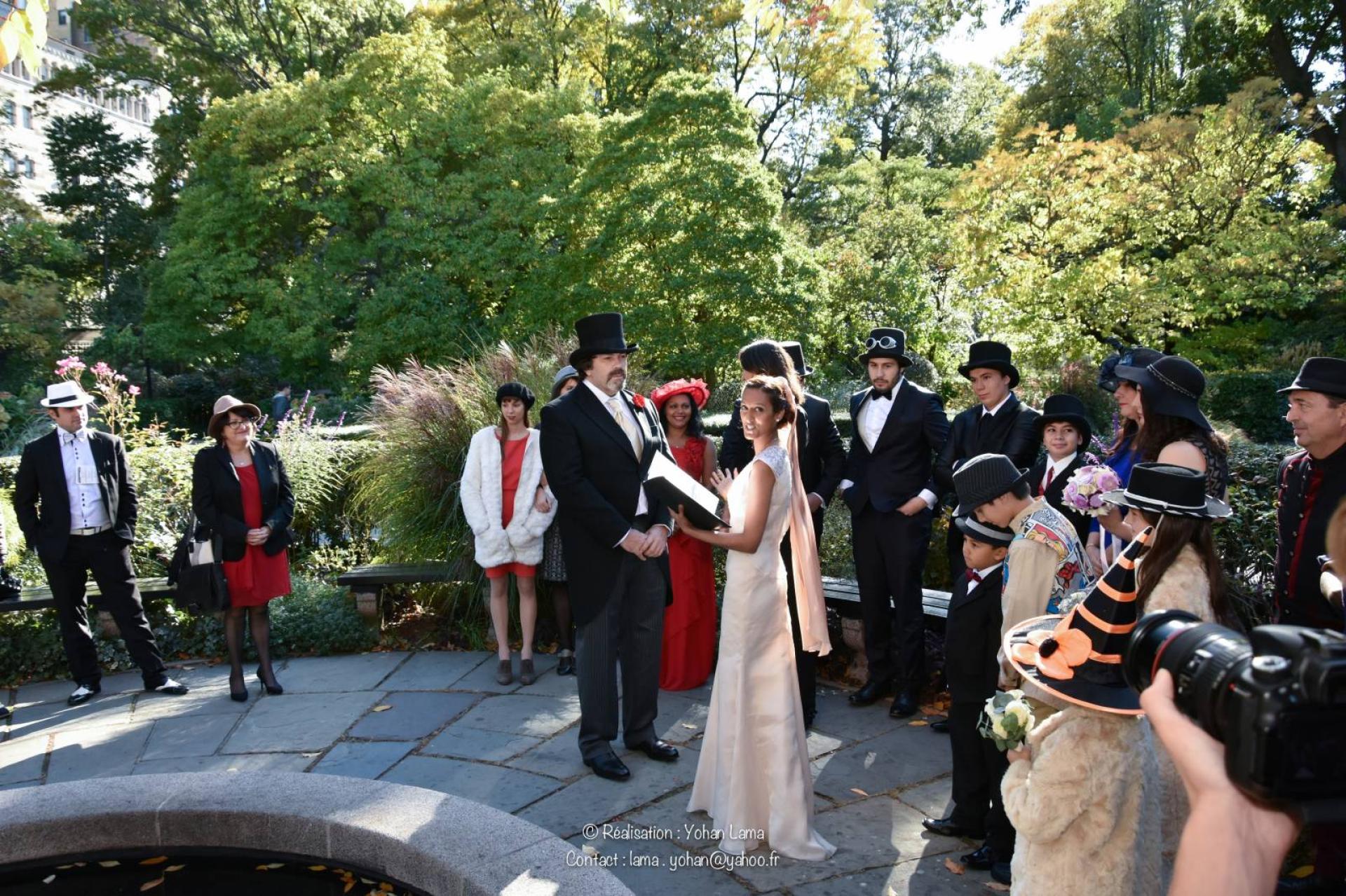 La cérémonie de mariage de Nazia & Fred s'est déroulée dans le mythique Central Park, un enchantement ! Au son de la mélodie d'une violoniste, ils se sont dit oui sous l'égide d'une officiante bilingue. Un bus a ensuite pris en charge l'ensemble des invités afin de leur faire faire un petit circuit dans la ville en dégustant un cocktail ambulant.