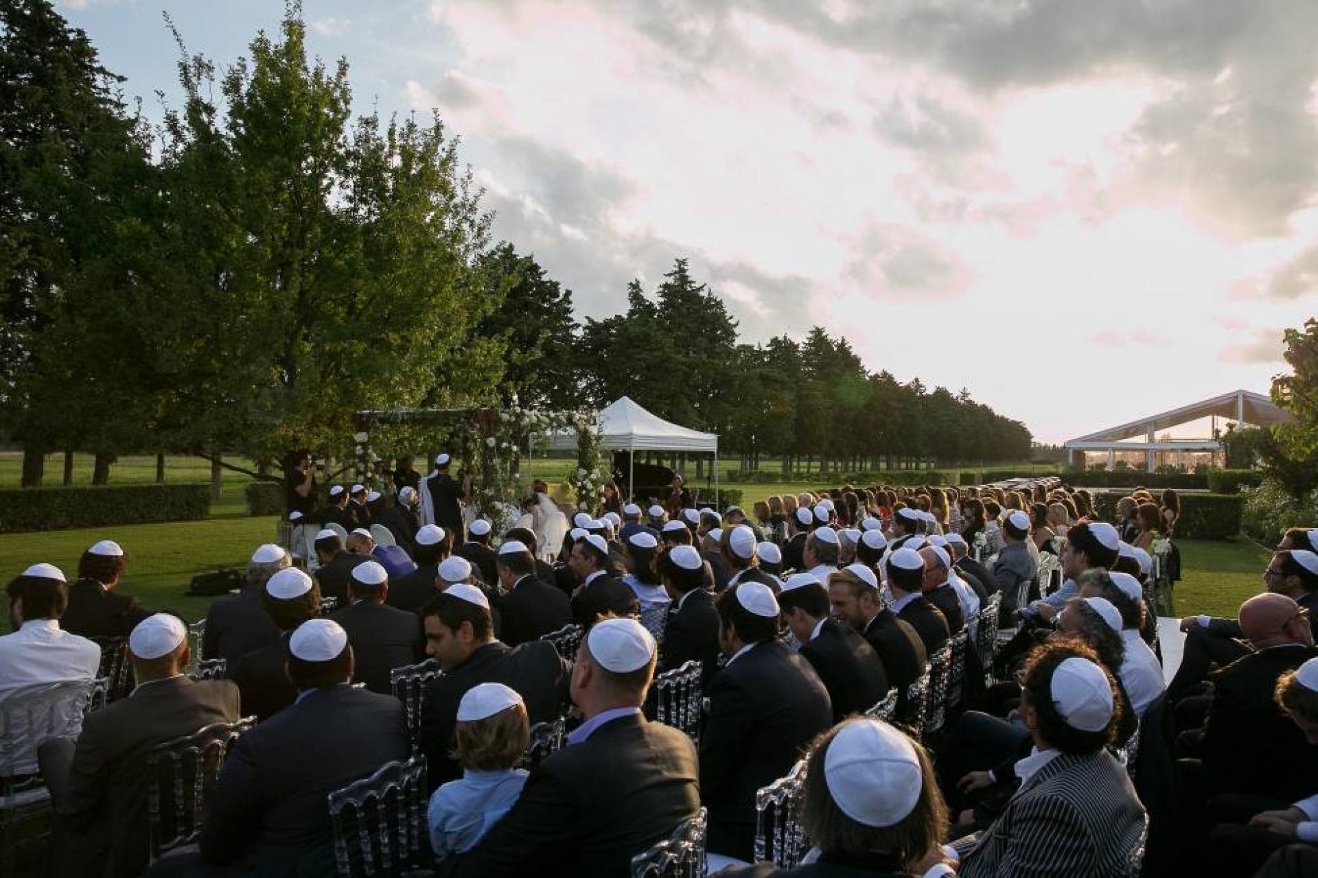 Pour la célébration religieuse de ce mariage juif, les noces se sont déroulées au Mas des Fées, une splendide bastide provençale près de Saint Rémy de Provence dans les Alpilles. Les mariés ont conviés tous leurs invités, venus de Paris pour la plupart et de l'étranger: 250 au total. Hôtels, navettes et logistique ont été gérés par Mariage dans l'air.