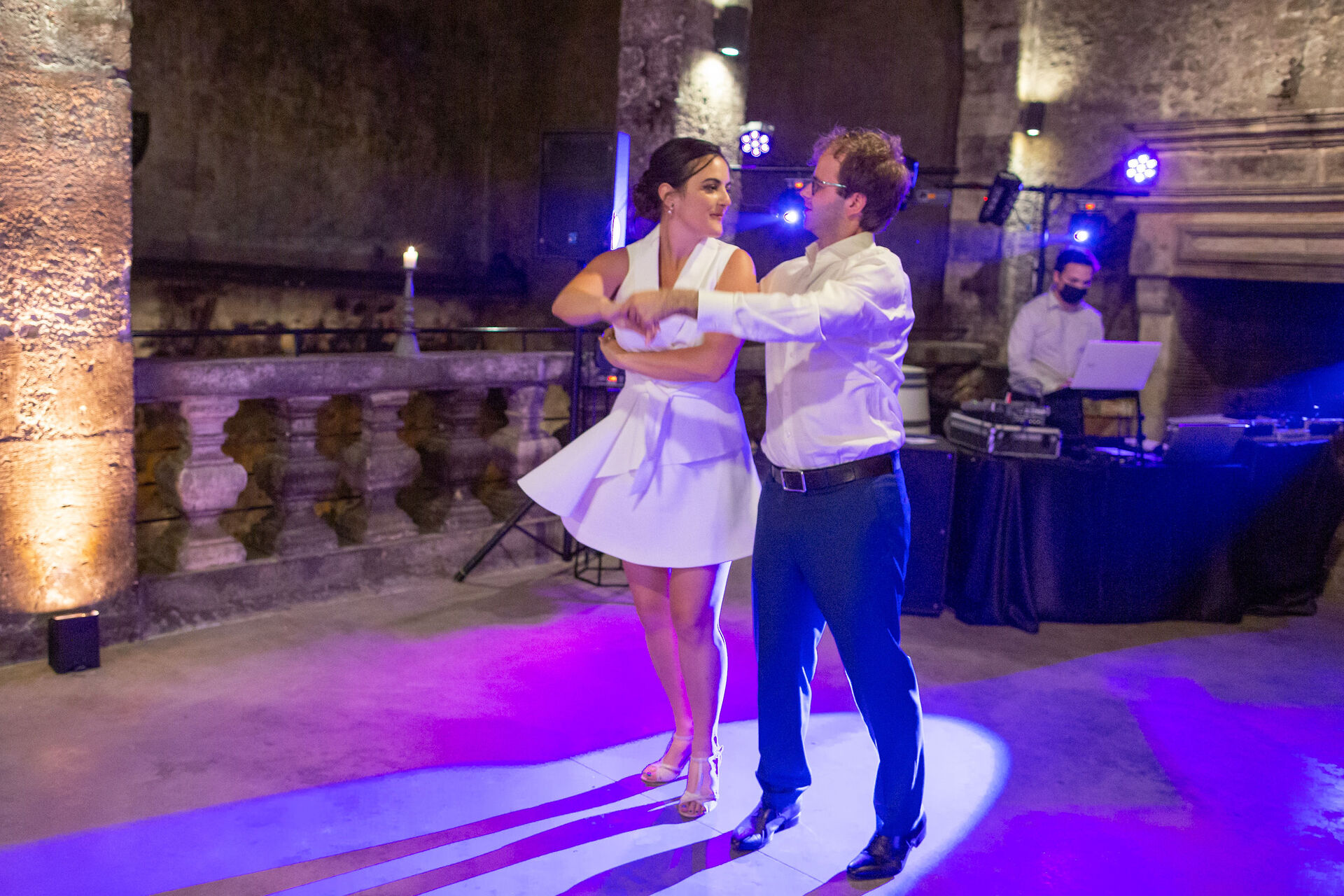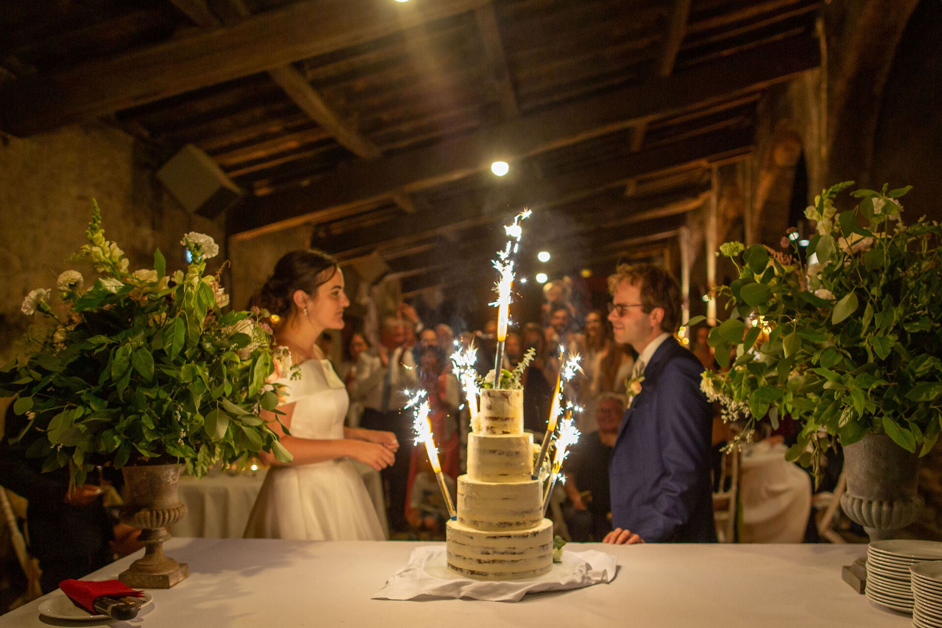 La décoration de votre mariage est pensée pour refléter vos goûts et l’atmosphère du lieu : compositions florales délicates, centres de table raffinés, chandeliers et touches de couleurs choisies avec soin pour sublimer les espaces intérieurs et extérieurs. La réception peut se dérouler sous les arcades du château, en plein air au milieu des vignes ou sous une tente élégante selon vos envies et la saison.