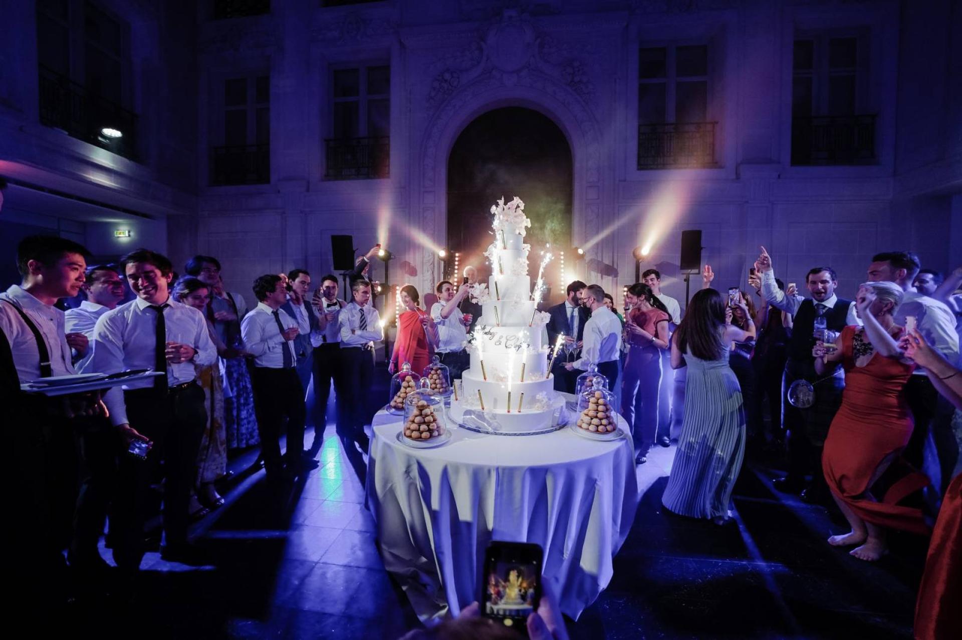 Le cortège de plus d'une centaine de personnes s'est ensuite rendu Place Vendôme, dans les Salons Classés de l'Hôtel d'Evreux où Potel et Chabot, traiteur de mariage de renom à Paris, a réalisé une master class avec une prestation magnifique.