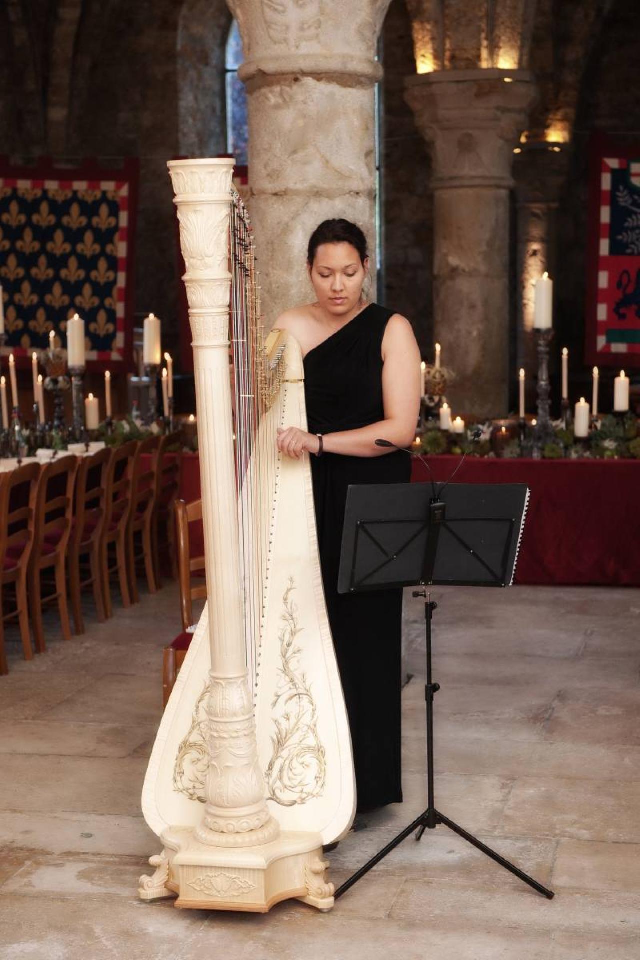 Pour que ce mariage chic et élégant, à la saveur historique, soit une réussite complète, notre agence de wedding planner a fait appel à une troupe de troubadours, une harpiste et un fauconnier pour une reconstitution historique inédite et ponctuer ces noces originales.