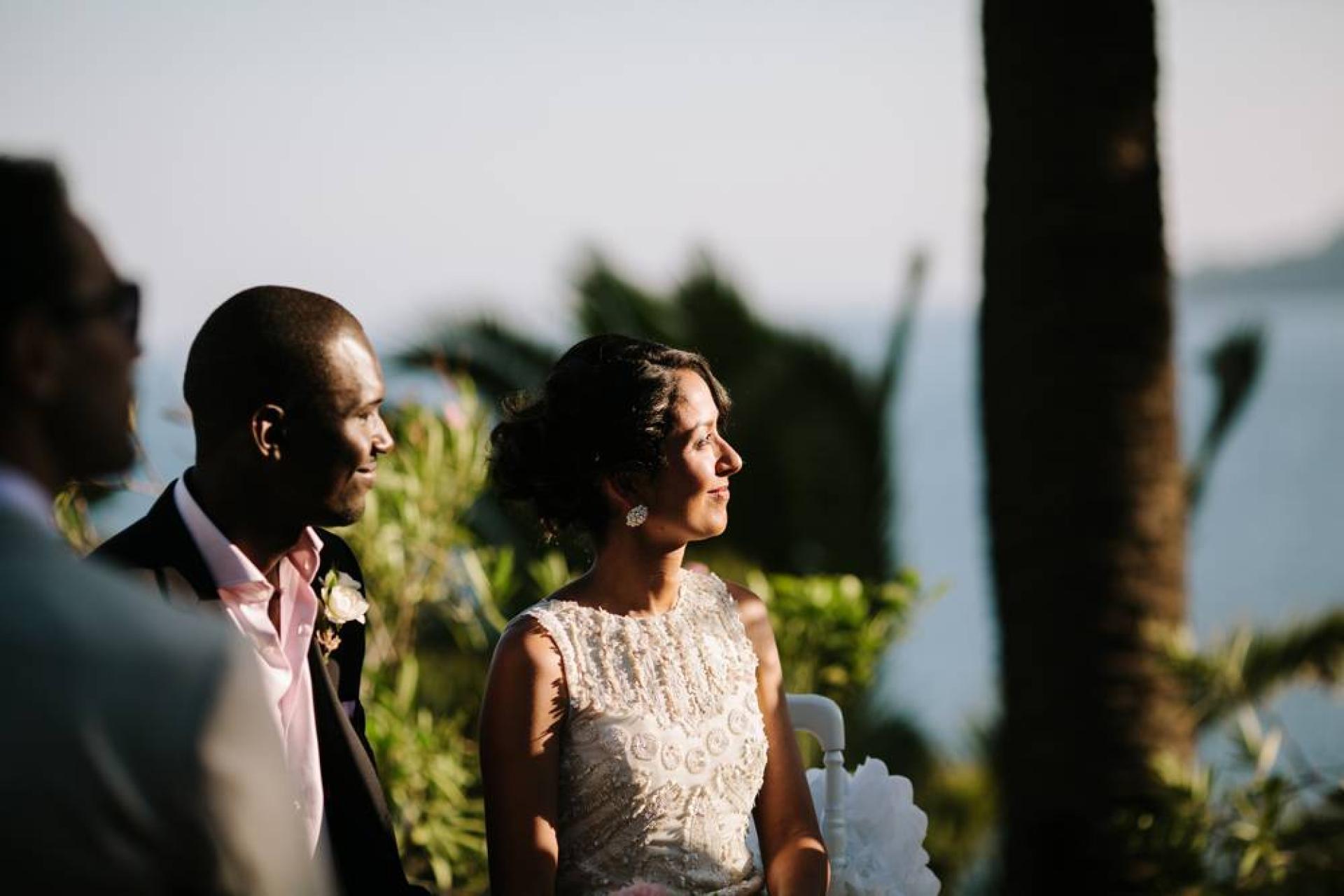 Nathalie, australienne, Hamza, sénégalais se sont dit oui lors d'une cérémonie laïque sous les palmiers et le soleil méditerranéens.